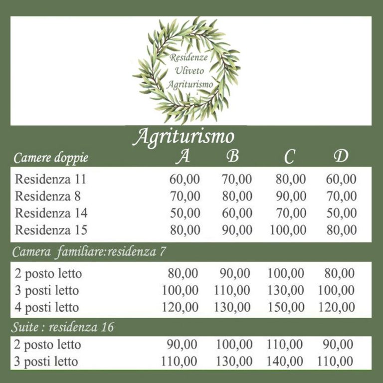 Listino prezzi camere 2026