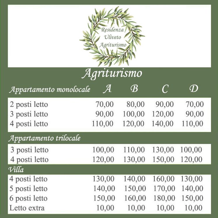 Extra a persona : €7,00 per cambio biancheria camera.